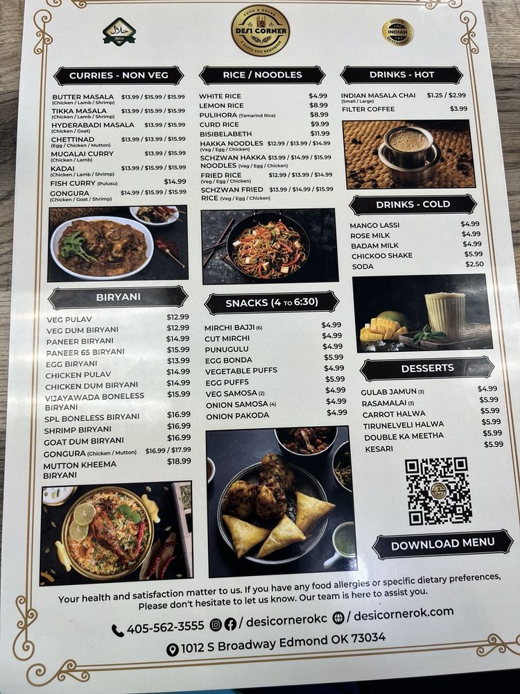 Desi Corner, located in Edmond, OK, offers a rich array of authentic Indian and fusion dishes. This vibrant eatery is a haven for food lovers seeking bold flavors and memorable meals. The menu showcases enticing vegetarian appetizers like the Baby Corn Manchurian and Chilli Gobi, both praised for their crunch and tangy zest.